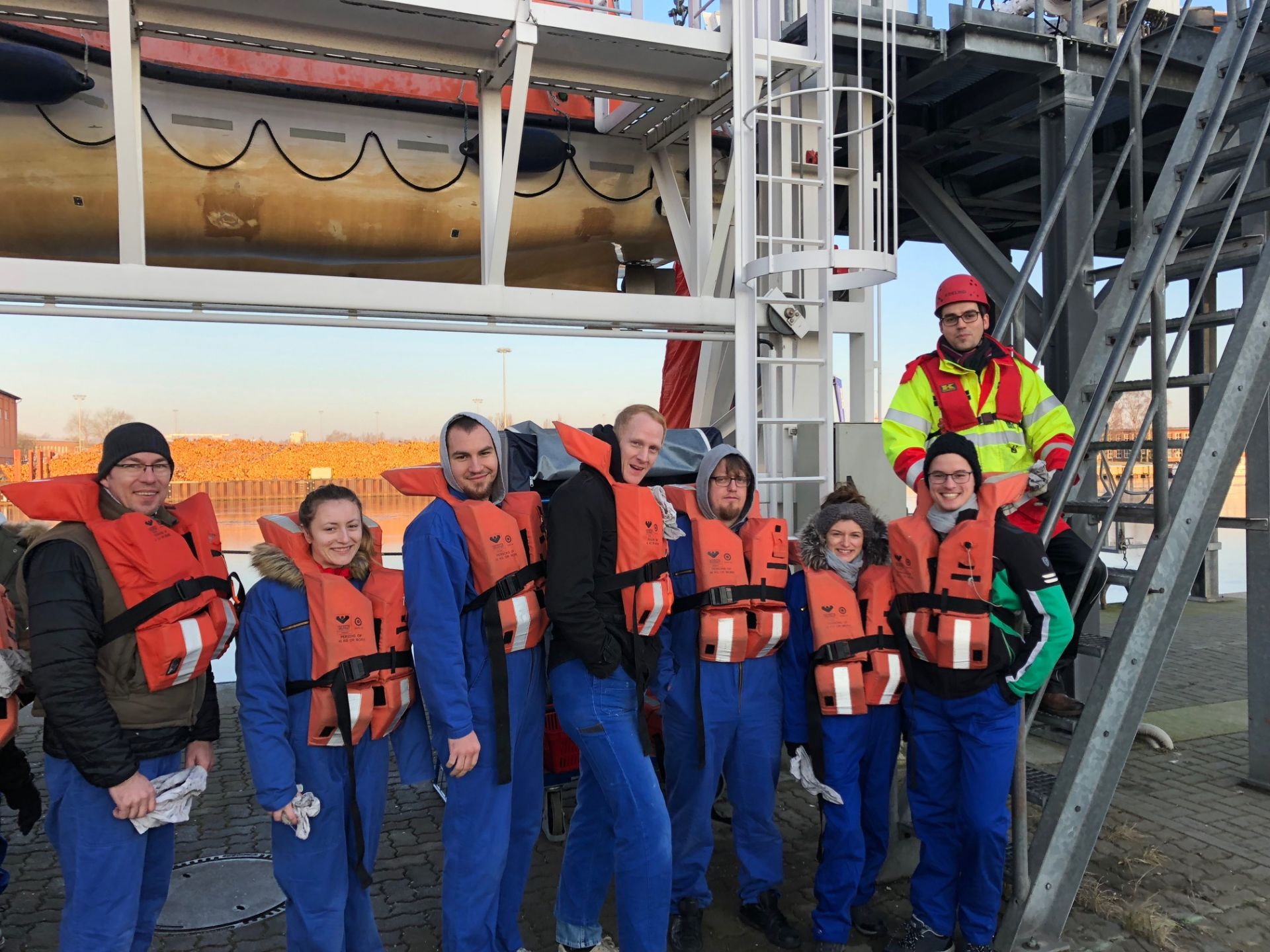 Enjoying the beautiful weather in icy Rostock during Basic Safety Training before Crew life starts! Zum Abschluss des Tages wurden alle Teilnehmer noch einmal schwer