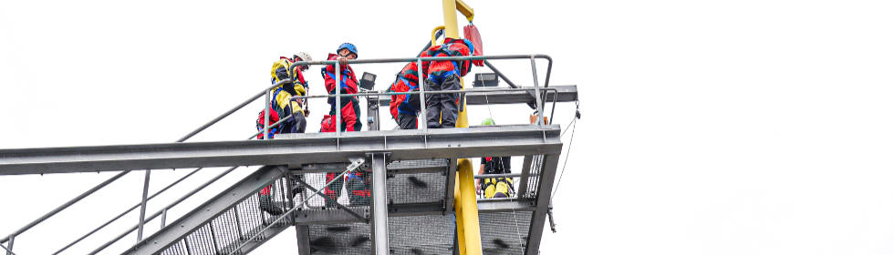 The course includes theoretical and practical parts. The participants will learn about different transition systems and procedures, as well as their advantages and disadvantages. During the course, participants will be informed of important behaviours and procedures in the construction and transfer process, and also in the correct use of PPE (personal protective equipment). For the practical exercises, evacuation from heights are trained on a boat and in the water.
